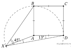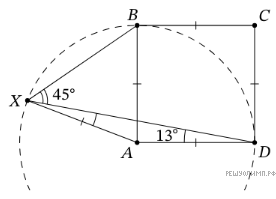 Треугольник XAD является равнобедренным, значит, Если угол ADX располагается по ту же сторону от отрезка AD, что и квадрат, то
