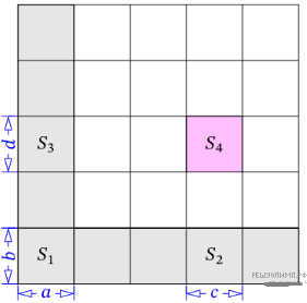 Введём обозначения: a — сумма высот рассматриваемых строк, b — сумма высот остальных строк, c — сумма длин рассматриваемых столбцов, d — сумма длин остальных столбцов.