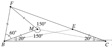 Отметим внутри треугольника BCF такую точку M, что треугольник BMF — равносторонний. Очевидно, что точки M и C лежат на серединном перпендикуляре к отрезку BF, поэтому