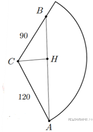 Гора имеет форму конуса с вершиной в точке C. Точка O — центр основания, точка A лежит на основании конуса, а точка B — на отрезке CA, причем CA = 120, AB = 30, OA = 40. Железная дорога проложена по кратчайшему пути вокруг горы из точки A в точку B. Точка H — ближайшая к вершине горы из всех точек железной дороги. Найдите длину пути BH.