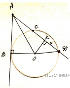 Так как радиус, проведенный к точке касания перпендикулярен касательной, то отрезок OB перпендикулярен отрезку AB, следовательно, треугольник AOB — прямоугольный. Пусть тогда