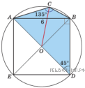 Следовательно, около четырехугольника ACBD можно описать окружность. Так как угол ABD, вписанный в эту окружность, прямой, то центр O окружности является серединой диагонали квадрата, то есть его центром. Тогда OC — радиус этой окружности. Таким образом,