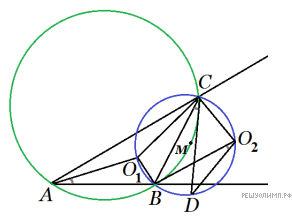(поскольку опирается на половину дуги BC), так что точки D, M, C лежат на прямой.