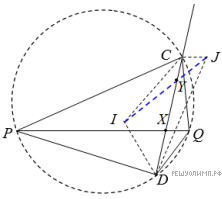 Последнее следует из одной из вариаций известного факта о том, что прямая между соответствующими инцентрами (эксцентрами) треугольников PCD, QCD параллельна биссектрисе между CD и PQ (последнее в свою очередь следует из леммы о трезубце).