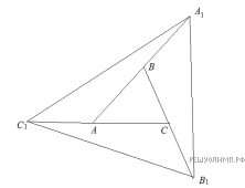 Версия для печати и копирования в MS WordДан треугольник АВС. На прямой АВ отметили точку А1 так, что АВ = ВА1, на прямой ВС отметили точку В1 так, что ВС = СВ1, и на прямой АС отметили точку С1 так, что АС = АС1. Найдите во сколько раз площадь треугольника А 1В1С1 больше площади треугольника АВС.