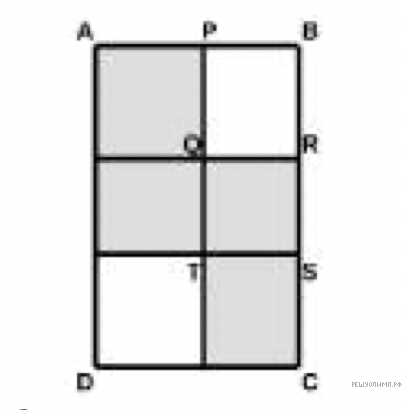 Известно, что площадь прямоугольника ABCD равна 35 клеткам. Найдите, чему равна площадь закрашенной фигуры, если известно, что AP < QR.