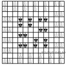 3) любые две клетки расположенные в одной строке по разные стороны от клетки первого цвета покрашены в разные цвета (клетки не обязательно соседние с клеткой первого цвета).
